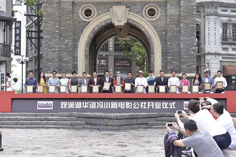 2012年5月24日下午,导演冯小刚、观澜湖集团主席兼行政总裁朱鼎健、华谊兄弟传媒集团董事长王中军三个“大腕”于北京联合召开新闻发布会,宣布携手成立合资公司,打造中国最具特色的电影旅游商业项目海口观澜湖华谊冯小刚电影公社,呈现一个“乌托邦”式的电影主题旅游胜地。一家是中国旅游休闲产业的领航企业,一家是中国娱乐产业的领军公司,一位是中国内地最具有电影票房号召力的著名导演,此次是首次奏响“集结号”,上演“三个男人一台戏”的跨界合作,共同打造全球首个以导演个人命名的电影主题旅游项目。