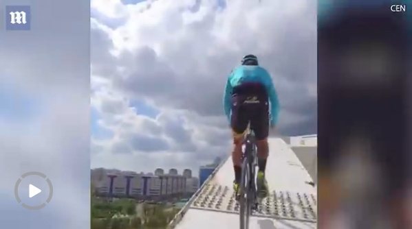 挑战不可能 意自行车手骑上大桥桥拱创下新纪录